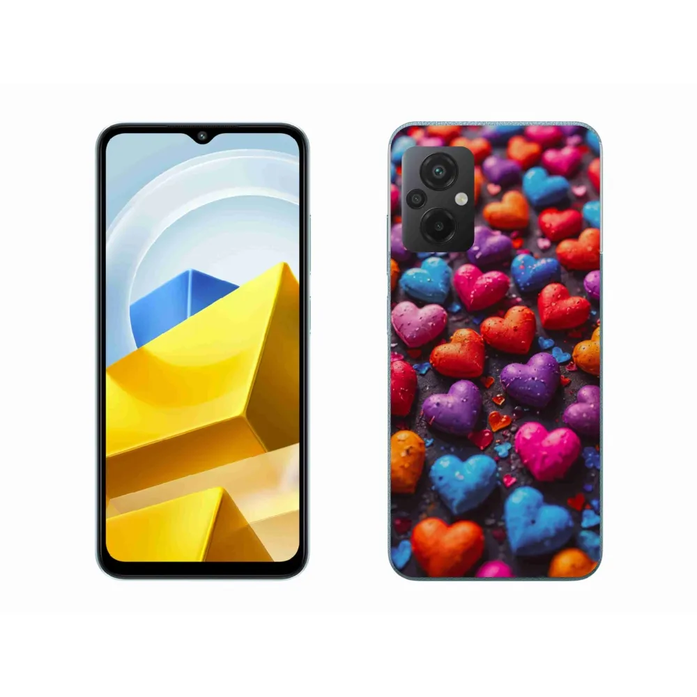Pružný gélový obal mmCase s obrázkom na Xiaomi Poco M5 4G - farebné srdcia