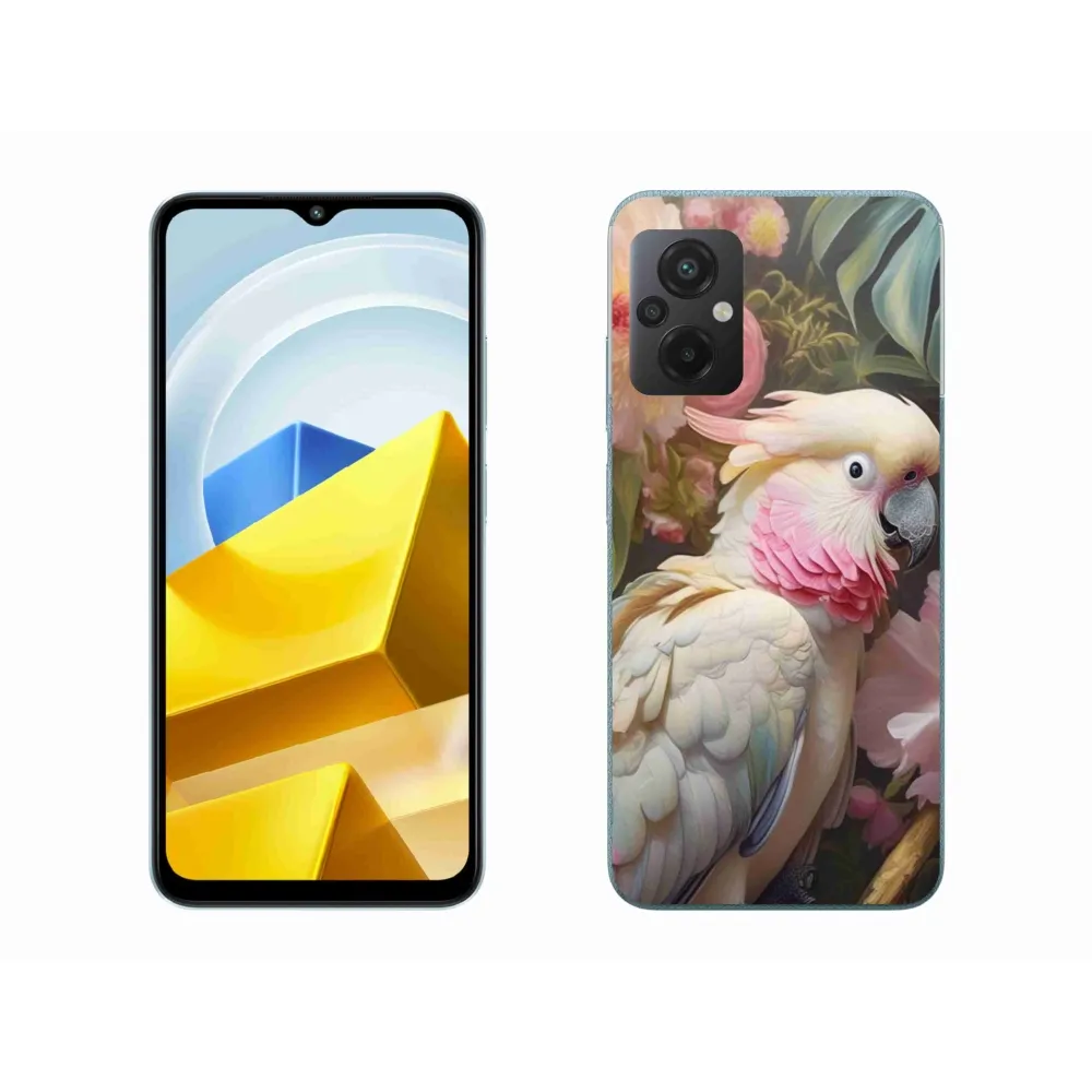 Pružný gélový obal mmCase s obrázkom na Xiaomi Poco M5 4G - papagáj kakadu ružový 2