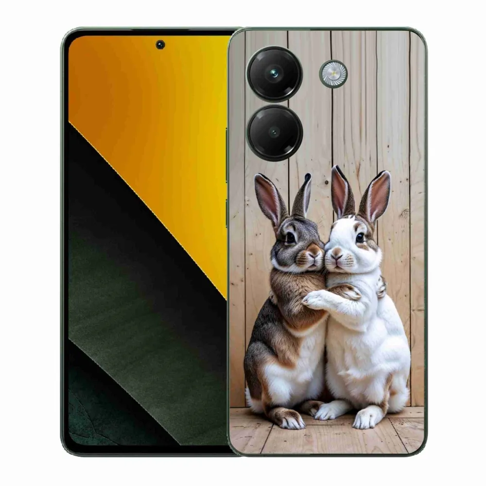 Zvieracie púzdro na Xiaomi Poco M7 Pro 5G - králičie pár poskytuje všetky výhody gélových obalov, a to v zaujímavom dizajne.
