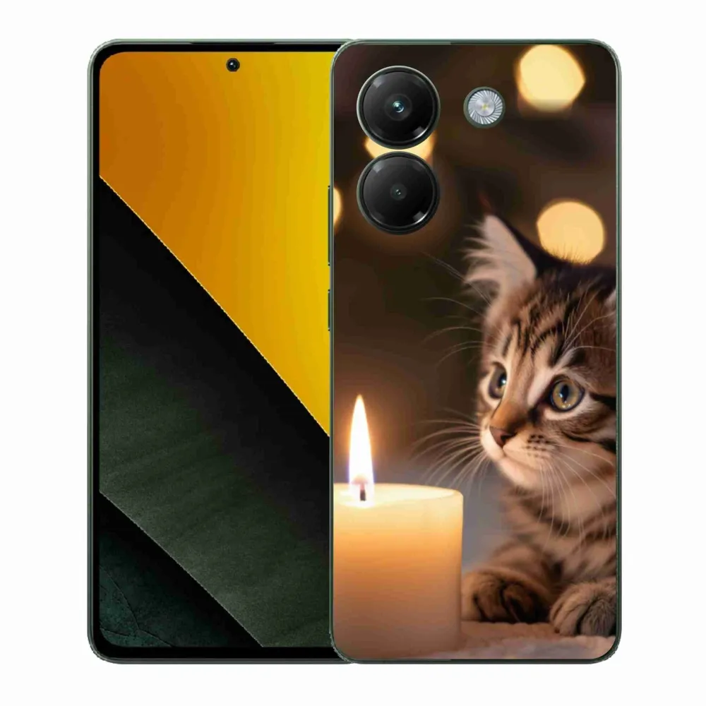 Pružný gélový obal mmCase s obrázkom na Xiaomi Poco M7 Pro - mačiatko a sviečka