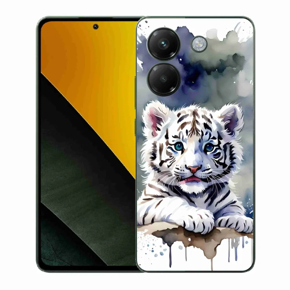 Psie púzdro na Xiaomi Poco M7 Pro - mláďa bieleho tigra poskytuje všetky výhody gélových obalov, a to v zaujímavom dizajne.
