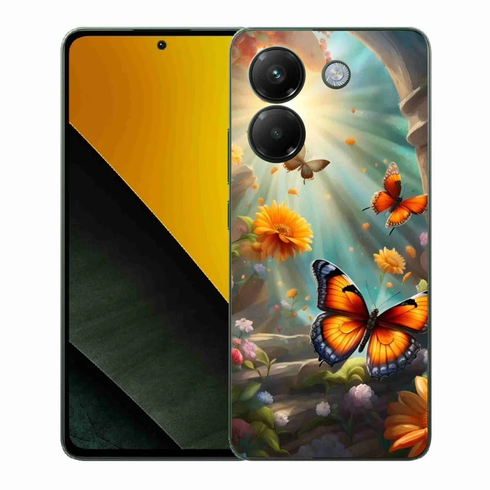 Pružný gélový obal mmCase s obrázkom na Xiaomi Poco M7 Pro - motýlia záhrada 2