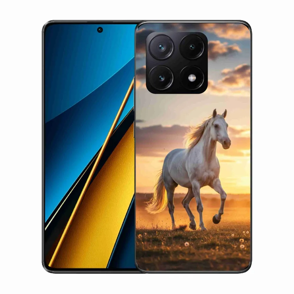 Pružný gélový obal mmCase s obrázkom na Xiaomi Poco X6 Pro 5G - bežiaci biely kôň 2