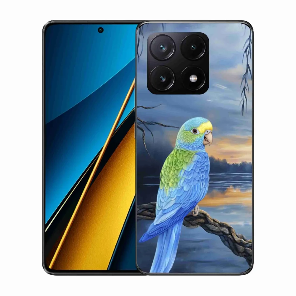 Zvieracie puzdro na Xiaomi Poco X6 Pro 5G - modrý papagáj biela poskytuje všetky výhody gélových krytov, a to v zaujímavom dizajne.