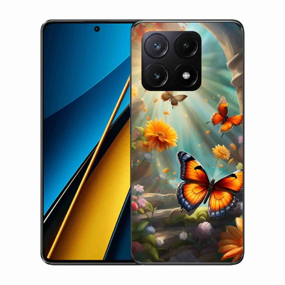 Zvieracie puzdro na Xiaomi Poco X6 Pro 5G - motýlia záhrada 2 poskytuje všetky výhody gélových obalov, a to v zaujímavom dizajne.