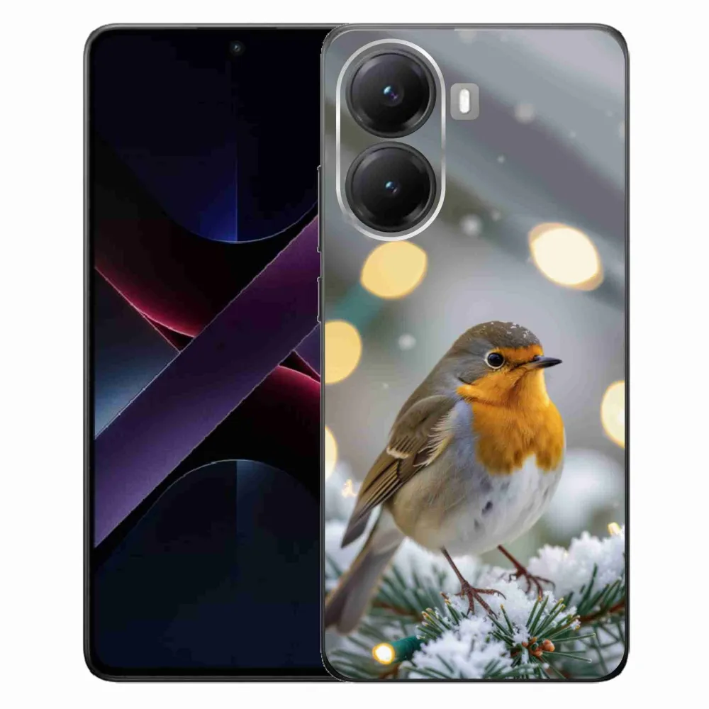 Vtáčie puzdro na Xiaomi Poco X7 Pro 5G - červienka v zime poskytuje všetky výhody gélových krytov, a to v zaujímavom dizajne.