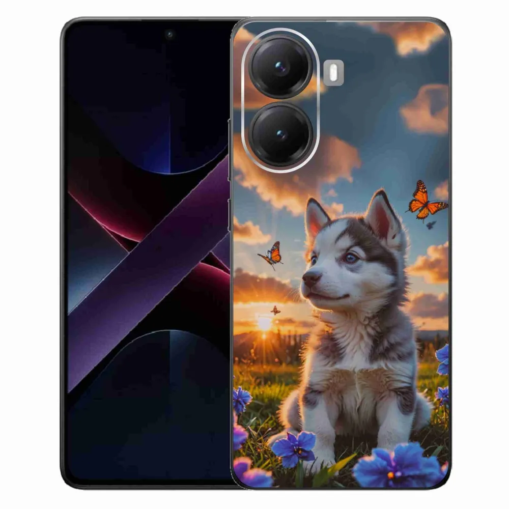 Psie púzdro na Xiaomi Poco X7 Pro 5G - husky pri západe slnka poskytuje všetky výhody gélových obalov, a to v zaujímavom dizajne.