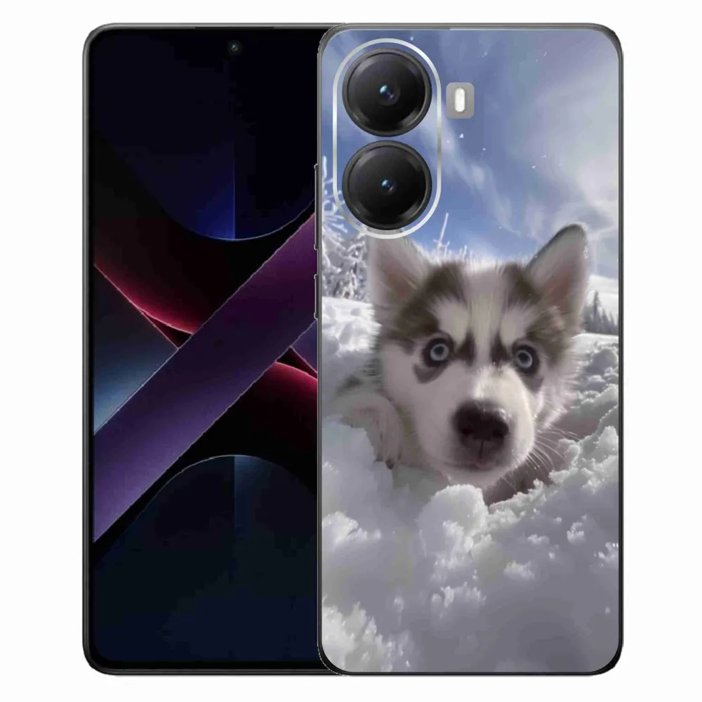 Psie púzdro na Xiaomi Poco X7 Pro 5G - husky v snehu poskytuje všetky výhody gélových obalov, a to v zaujímavom dizajne.