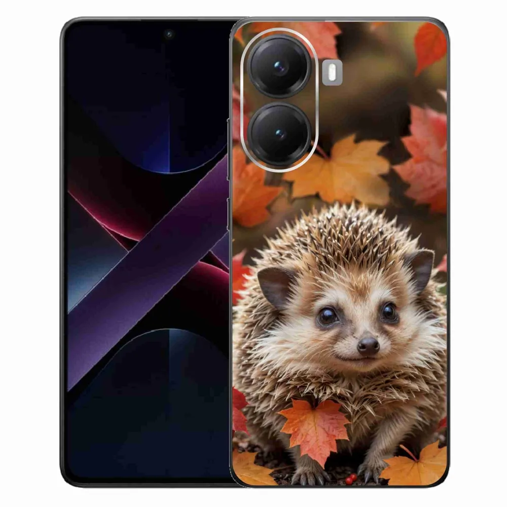 Zvieracie púzdro na Xiaomi Poco X7 Pro 5G - ježko v lístí poskytuje všetky výhody gélových obalov, a to v zaujímavom dizajne.