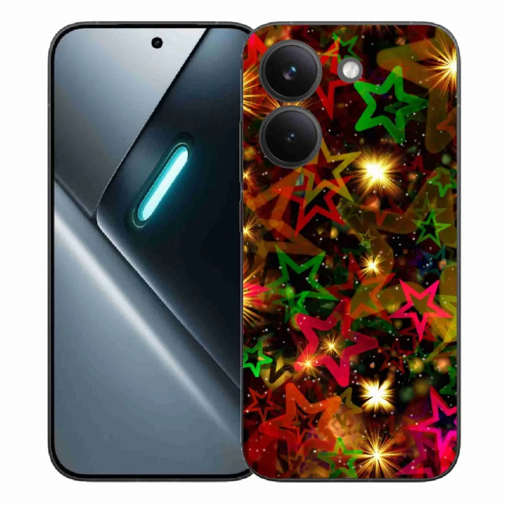 Vianočné puzdro na Xaiomi Poco X8 Pro - farebné hviezdičky poskytuje všetky výhody gélových obalov, a to v zaujímavom dizajne.