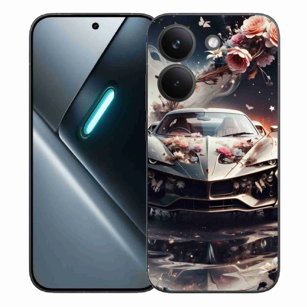 Puzdro na Xaiomi Poco X8 Pro - kvetinový športový automobil poskytuje všetky výhody gélových obalov, a to v zaujímavom dizajne.