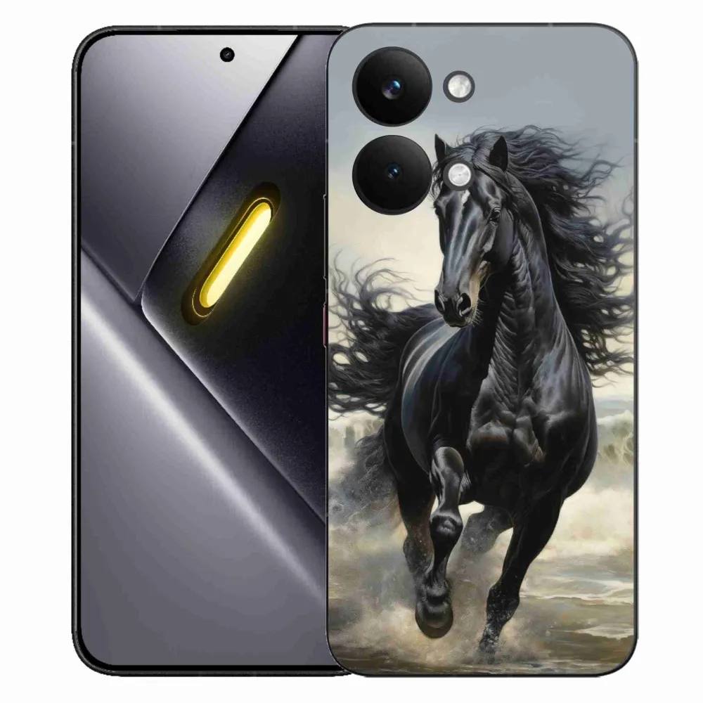 Púzdro s motívom koňa na Xiaomi Poco X8 Pro Max - bežiaci čierny kôň poskytuje všetky výhody gélových krytov, a to v zaujímavom dizajne.