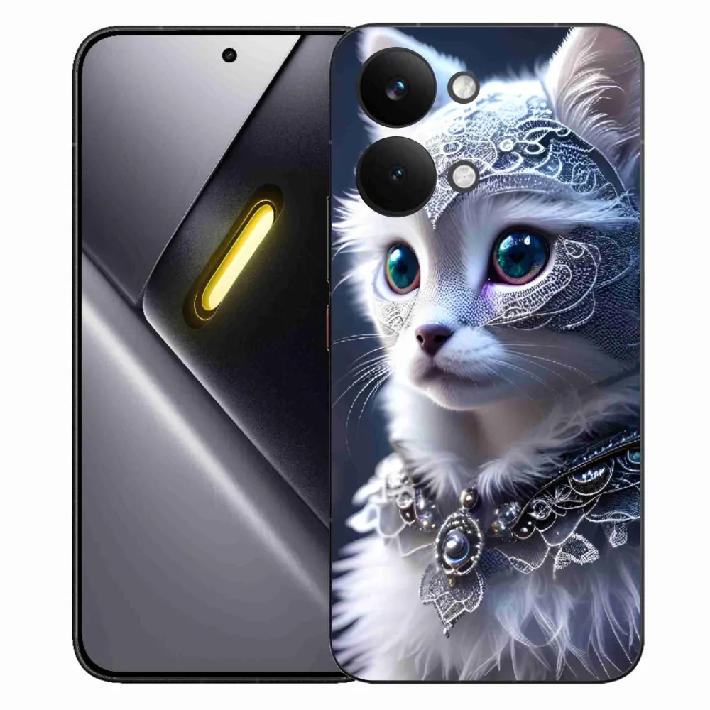 Mačacie púzdro na Xiaomi Poco X8 Pro Max - biela mačka poskytuje všetky výhody gélových krytov, a to v zaujímavom dizajne.