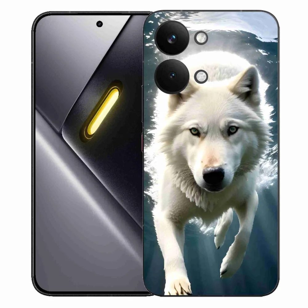 Púzdro so šelmou na Xiaomi Poco X8 Pro Max - bílý vlk poskytuje všetky výhody gélových krytov, a to v zaujímavom dizajne.