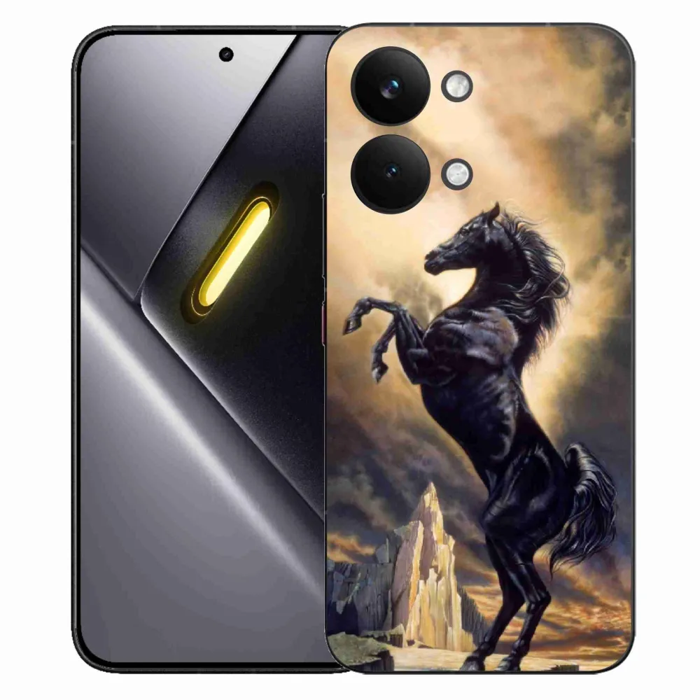 Pružný gélový obal mmCase s obrázkom na Xiaomi Poco X8 Pro Max - čierny kreslený kôň