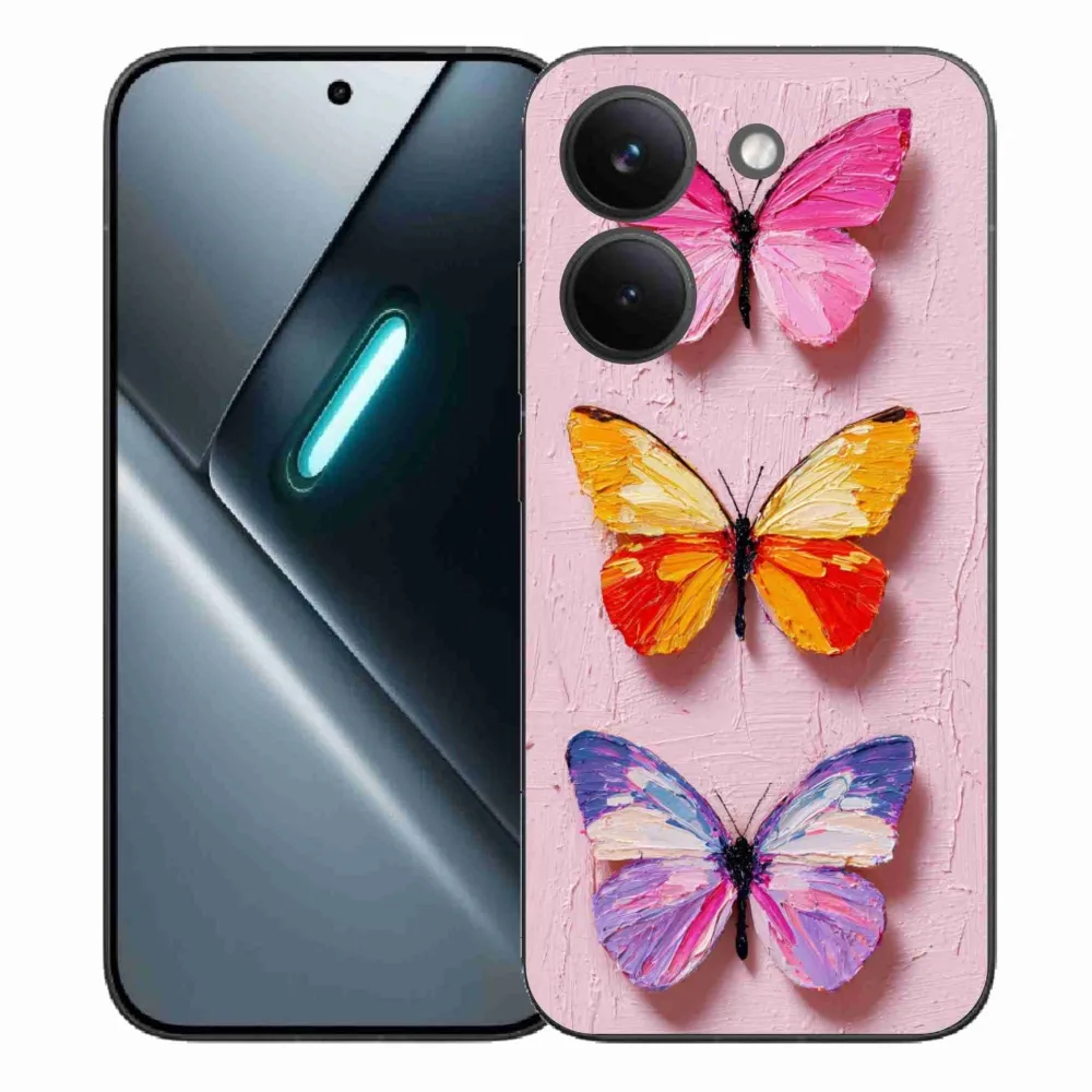 Zvieracie puzdro na Xaiomi Poco X8 Pro - motýlia trojica poskytuje všetky výhody gélových obalov, a to v zaujímavom dizajne.