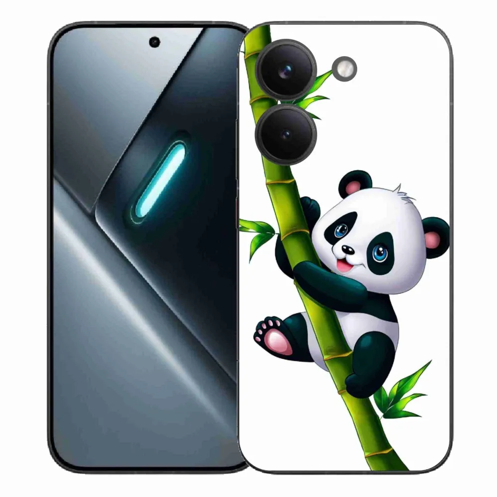 Zvieracie púzdro na Xaiomi Poco X8 Pro - panda na bambuse poskytuje všetky výhody gélových krytov, a to v zaujímavom dizajne.