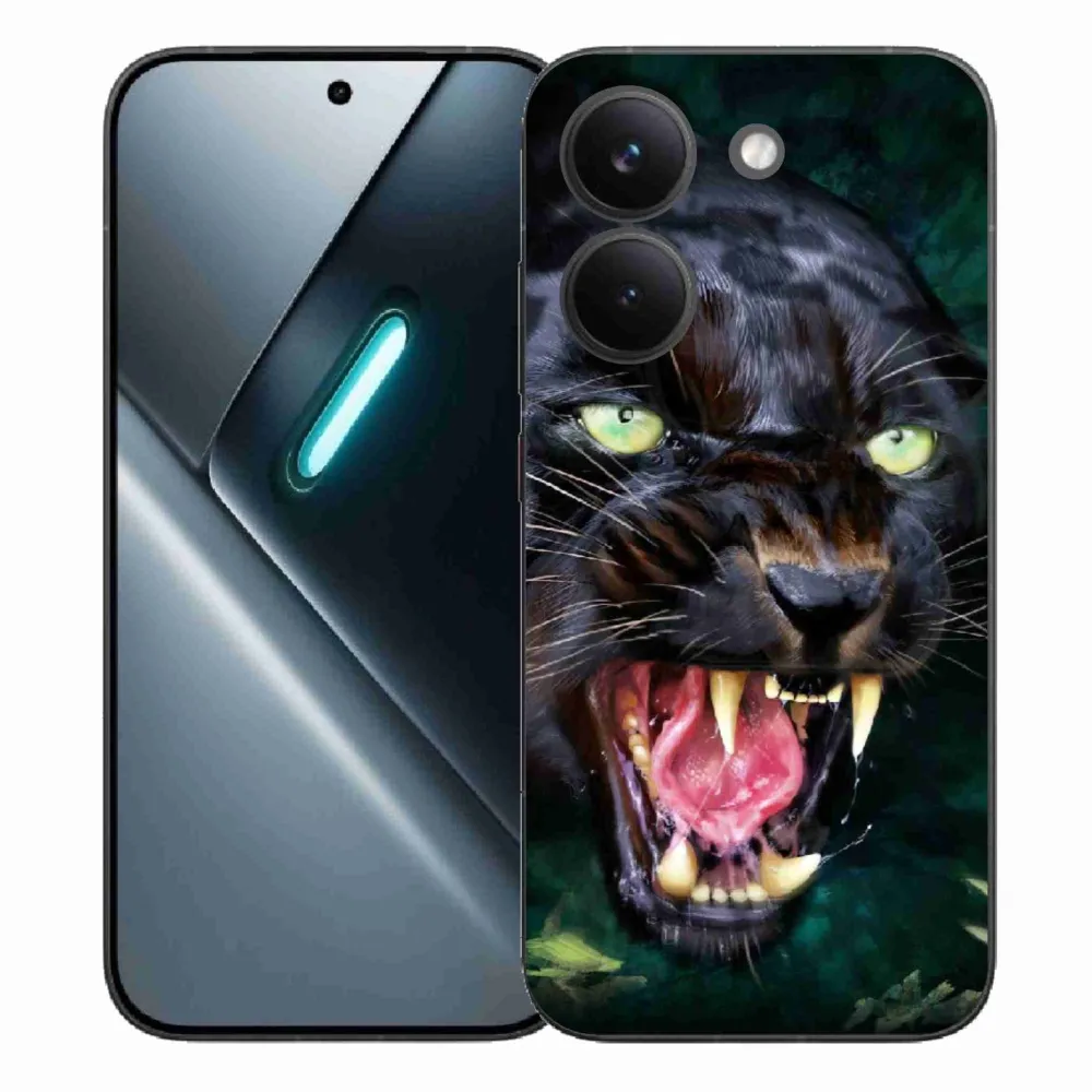 Púzdro so šelmou na Xaiomi Poco X8 Pro - rozzúrený černý panter poskytuje všetky výhody gélových krytov, a to v zaujímavom dizajne.