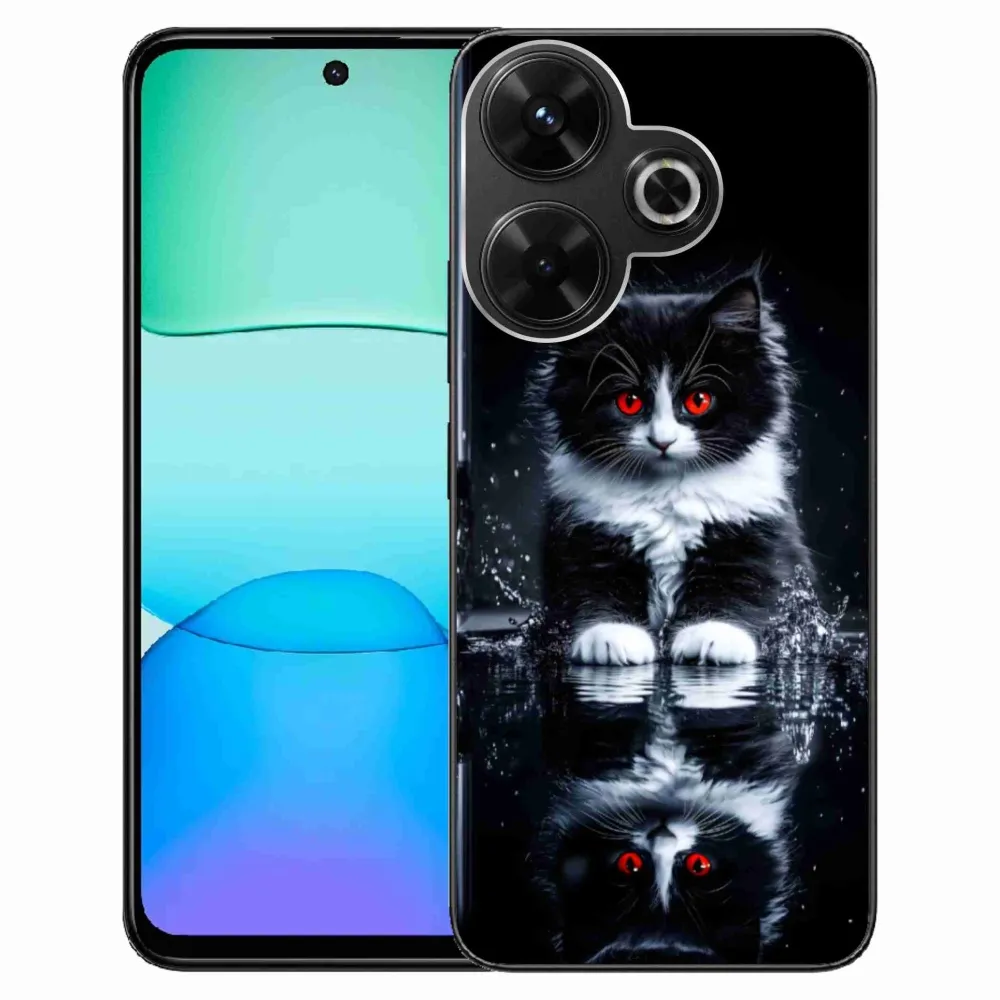 Mačacie púzdro na Xiaomi Redmi 13 4G/Poco M6 4G - čiernobiele mačiatko poskytuje všetky výhody gélových obalov, a to v zaujímavom dizajne.