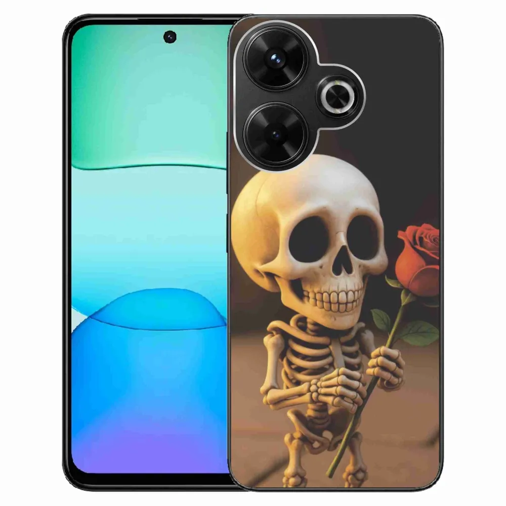 Púzdro na Xiaomi Redmi 13 4G/Poco M6 4G - kostlivec s ružou poskytuje všetky výhody gélových obalov, a to v zaujímavom dizajne.