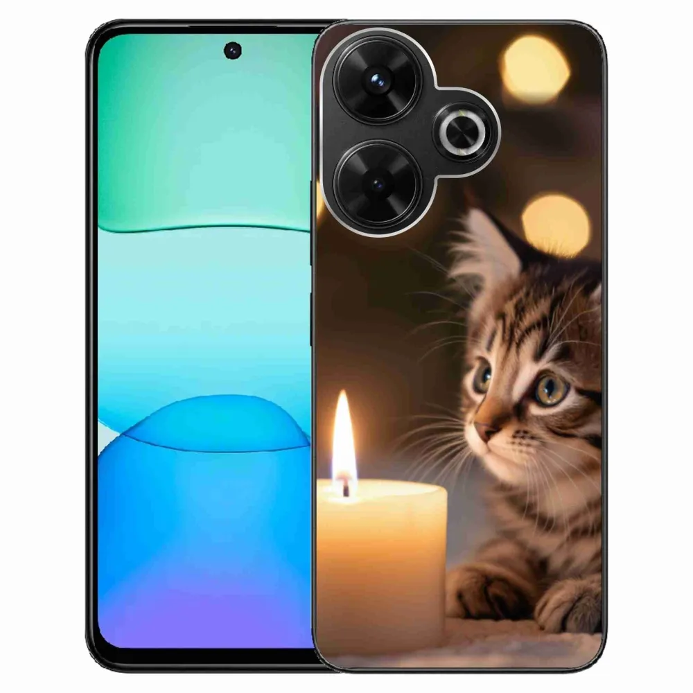 Pružný gélový obal mmCase s obrázkom na Xiaomi Redmi 13 4G/Poco M6 4G - mačiatko a sviečka
