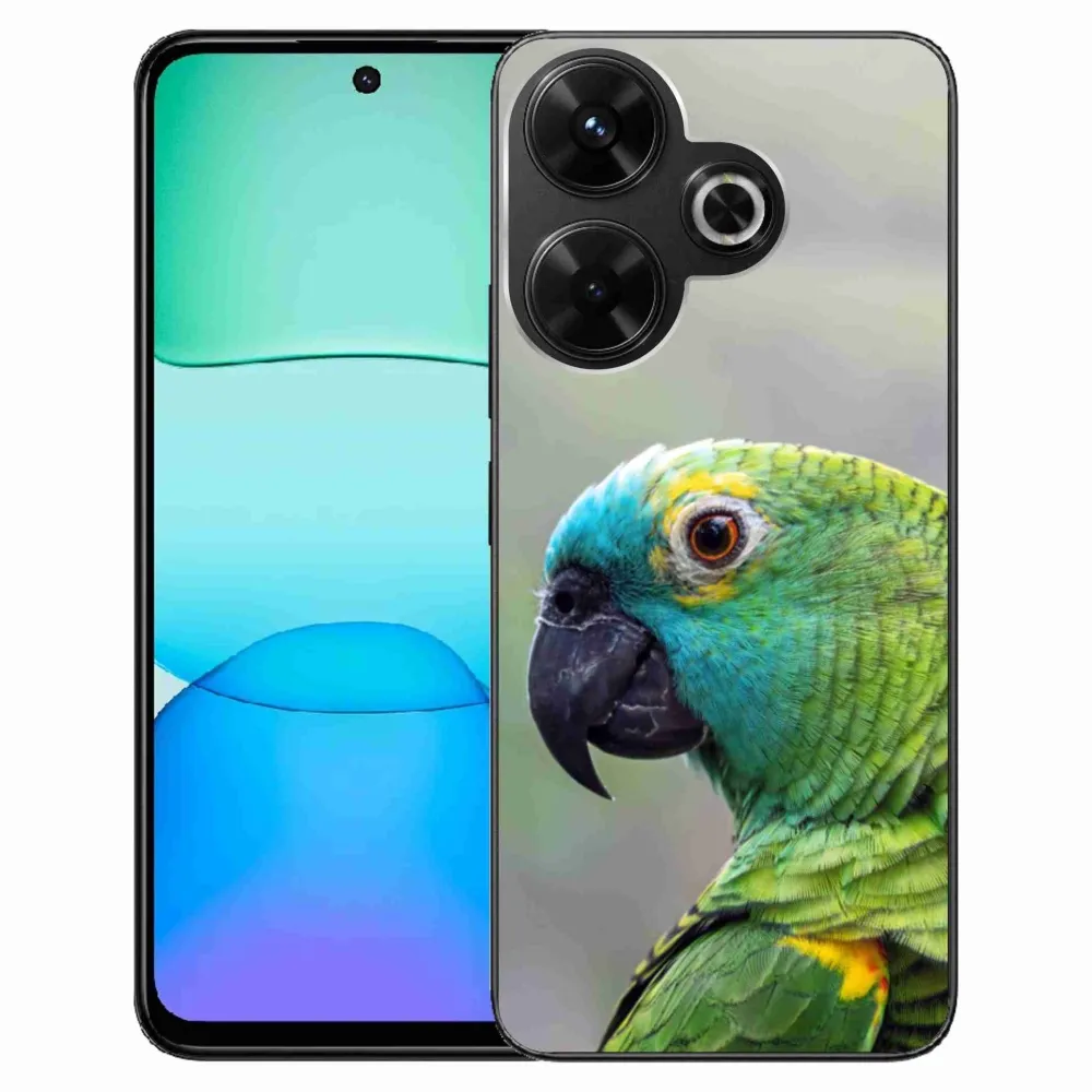 Zvieracie puzdro na Xiaomi Redmi 13 4G/Poco M6 4G - papagáj amazoňan poskytuje všetky výhody gélových krytov, a to v zaujímavom dizajne.