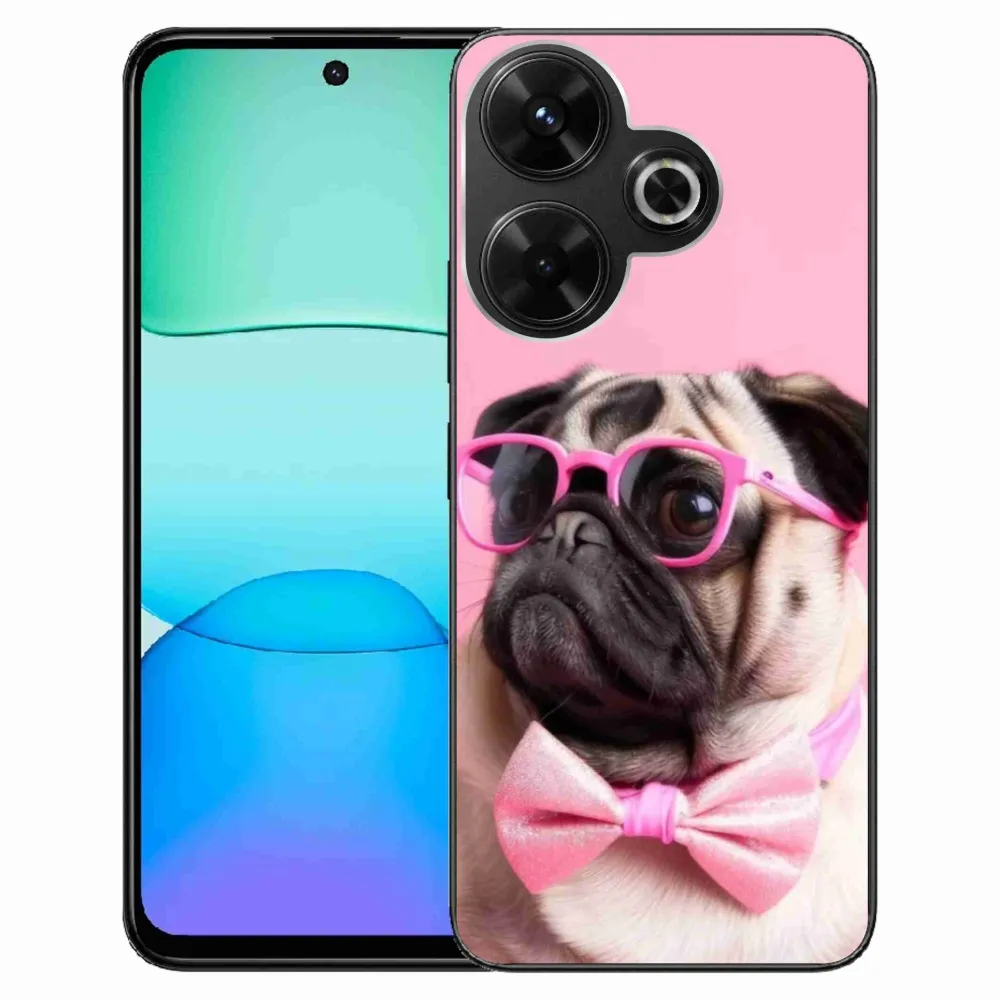 Psie púzdro na Xiaomi Redmi 13 4G/Poco M6 4G - štýlový mops poskytuje všetky výhody gélových obalov, a to v zaujímavom dizajne.