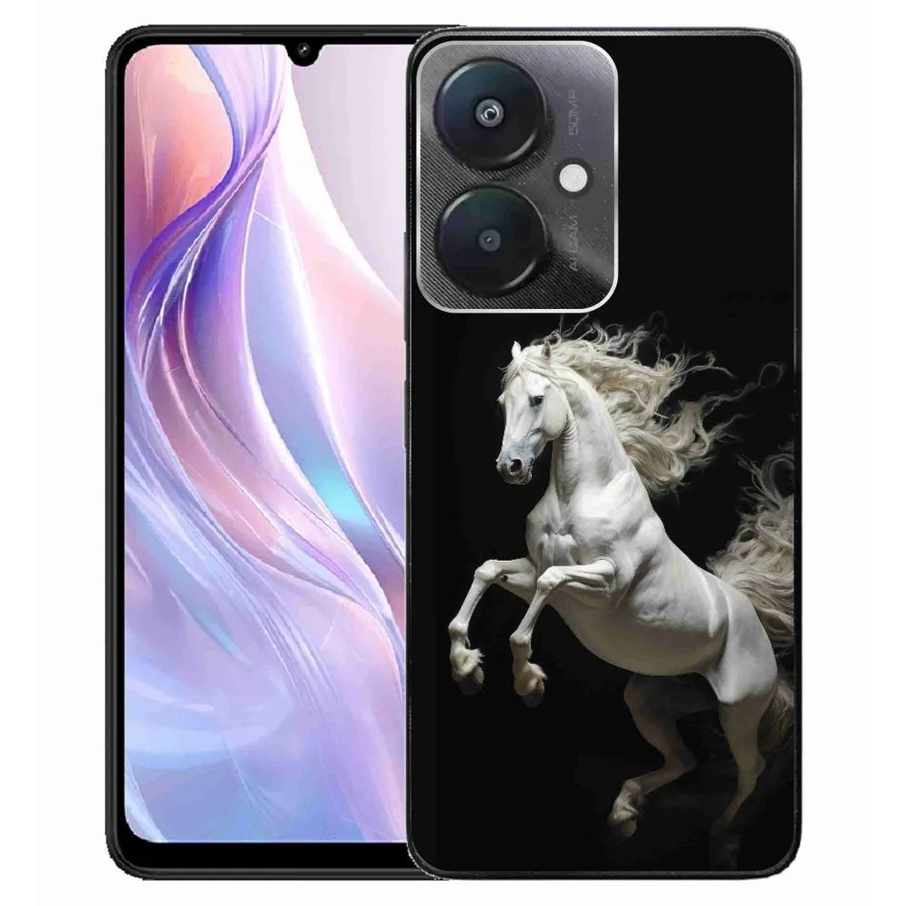 Pružný gélový obal mmCase s obrázkom na Xiaomi Redmi 13C 5G - biely kôň 4
