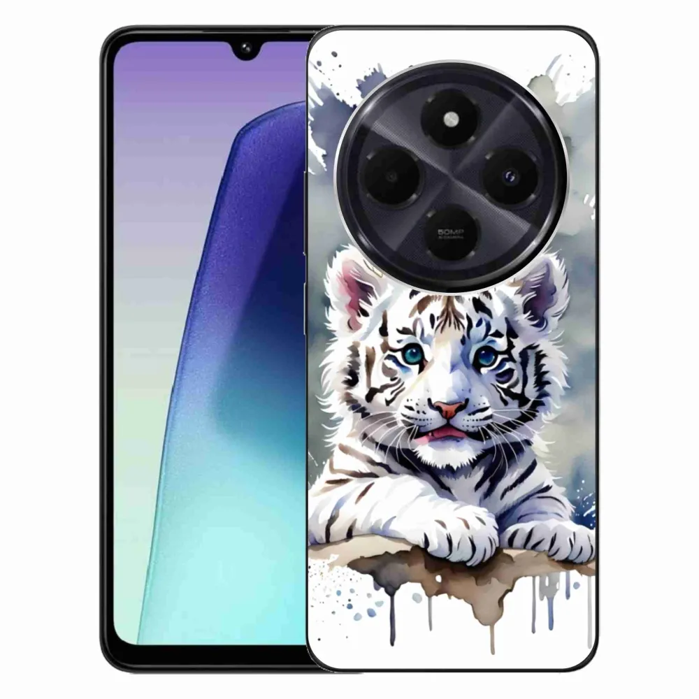 Psie púzdro na Xiaomi Redmi 14C/Poco C75 - mláďa bieleho tigra poskytuje všetky výhody gélových obalov, a to v zaujímavom dizajne.