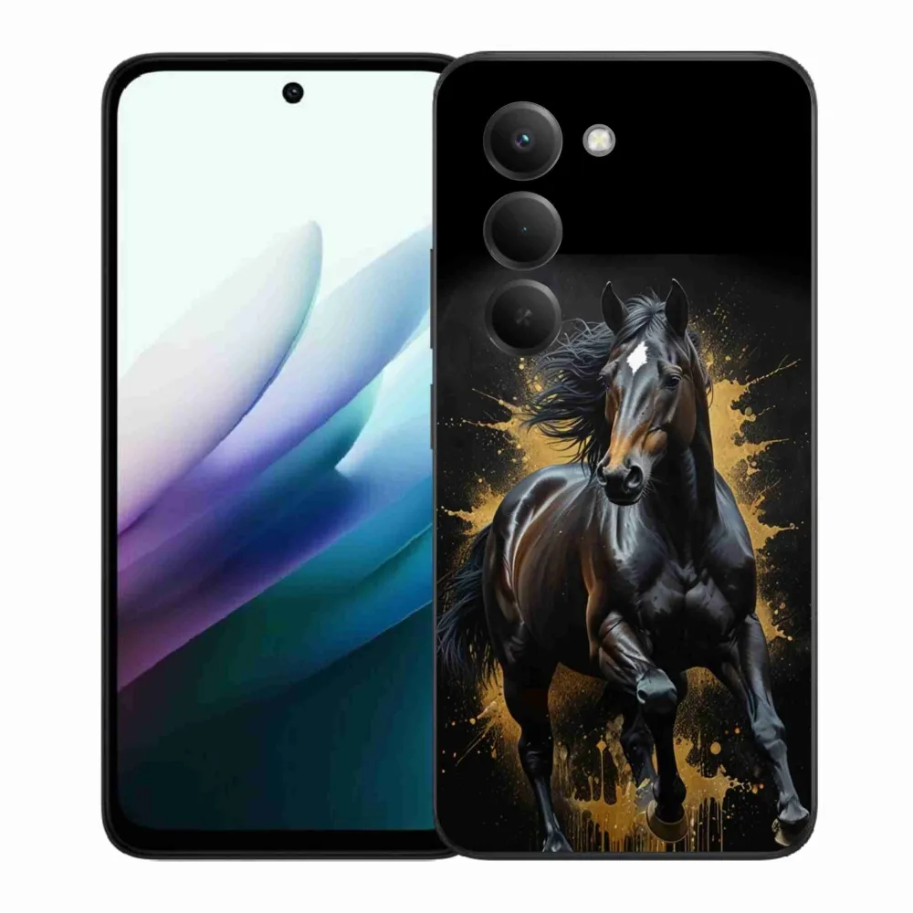 Púzdro s motívom koňa na Xiaomi Redmi 15 4G/5G 171 mm - elegantný čierny žrebec poskytuje všetky výhody gélových krytov, a to v zaujímavom dizajne.