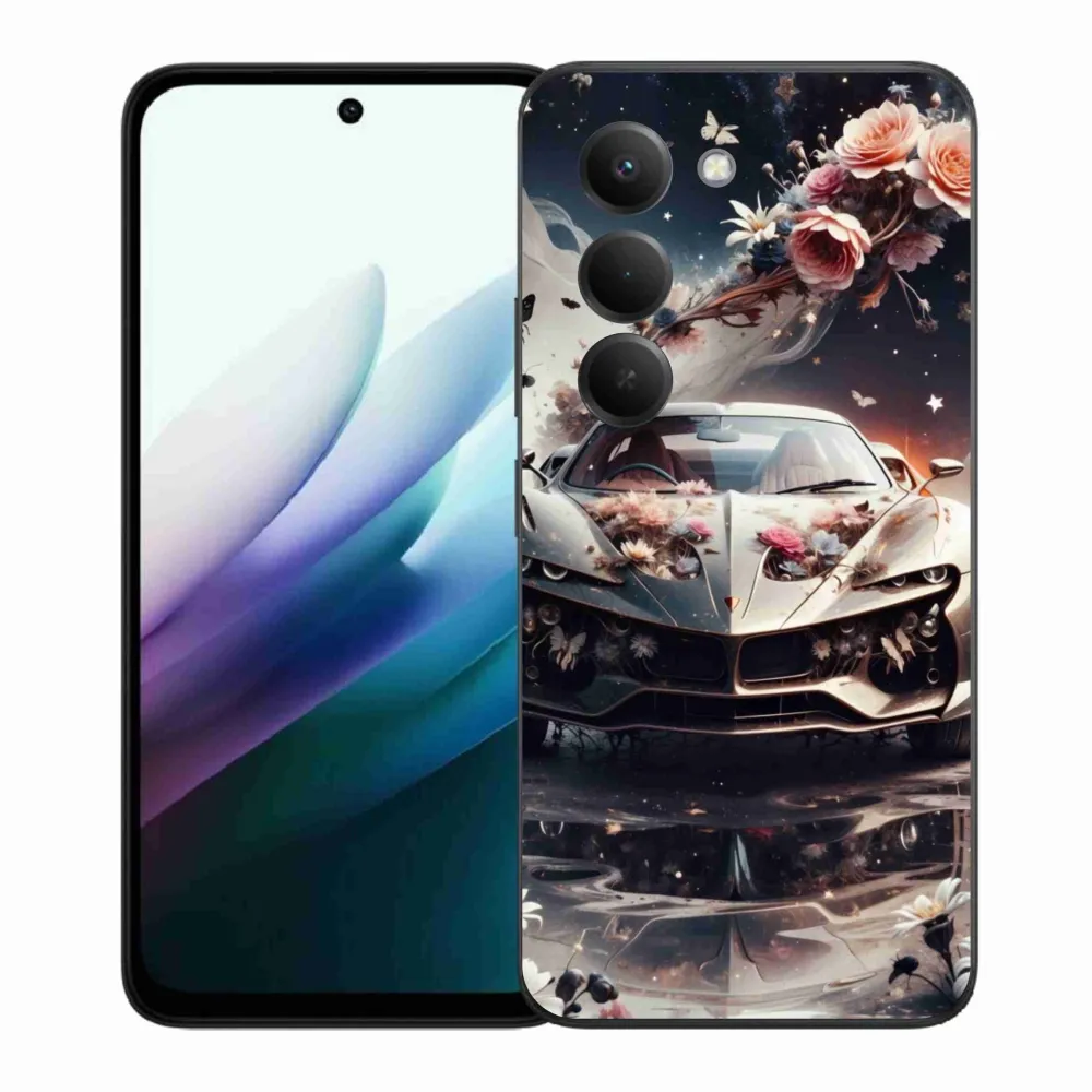 Puzdro na Xiaomi Redmi 15 4G/5G (171mm) - kvetinový športový automobil poskytuje všetky výhody gélových obalov, a to v zaujímavom dizajne.