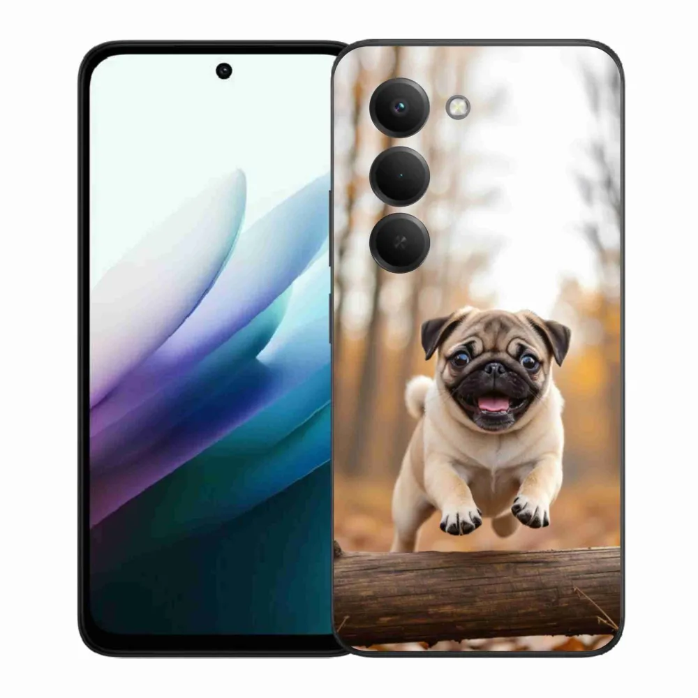 Psie púzdro na Xiaomi Redmi 15 4G/5G (171mm) - mops 2 poskytuje všetky výhody gélových obalov, a to v zaujímavom dizajne.