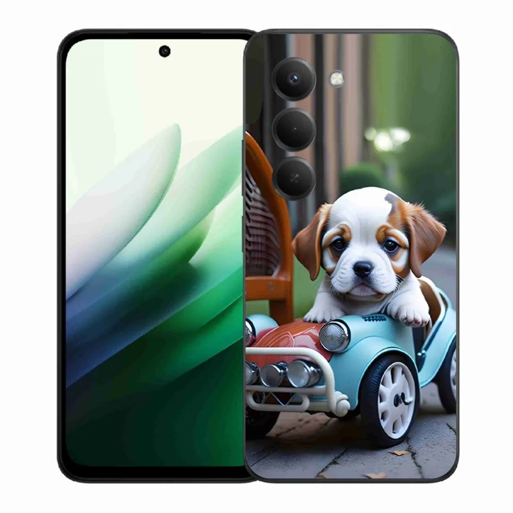 Psie púzdro na Xiaomi Redmi 15 5G 169mm - šteňa v retro aute poskytuje všetky výhody gélových obalov, a to v zaujímavom dizajne.