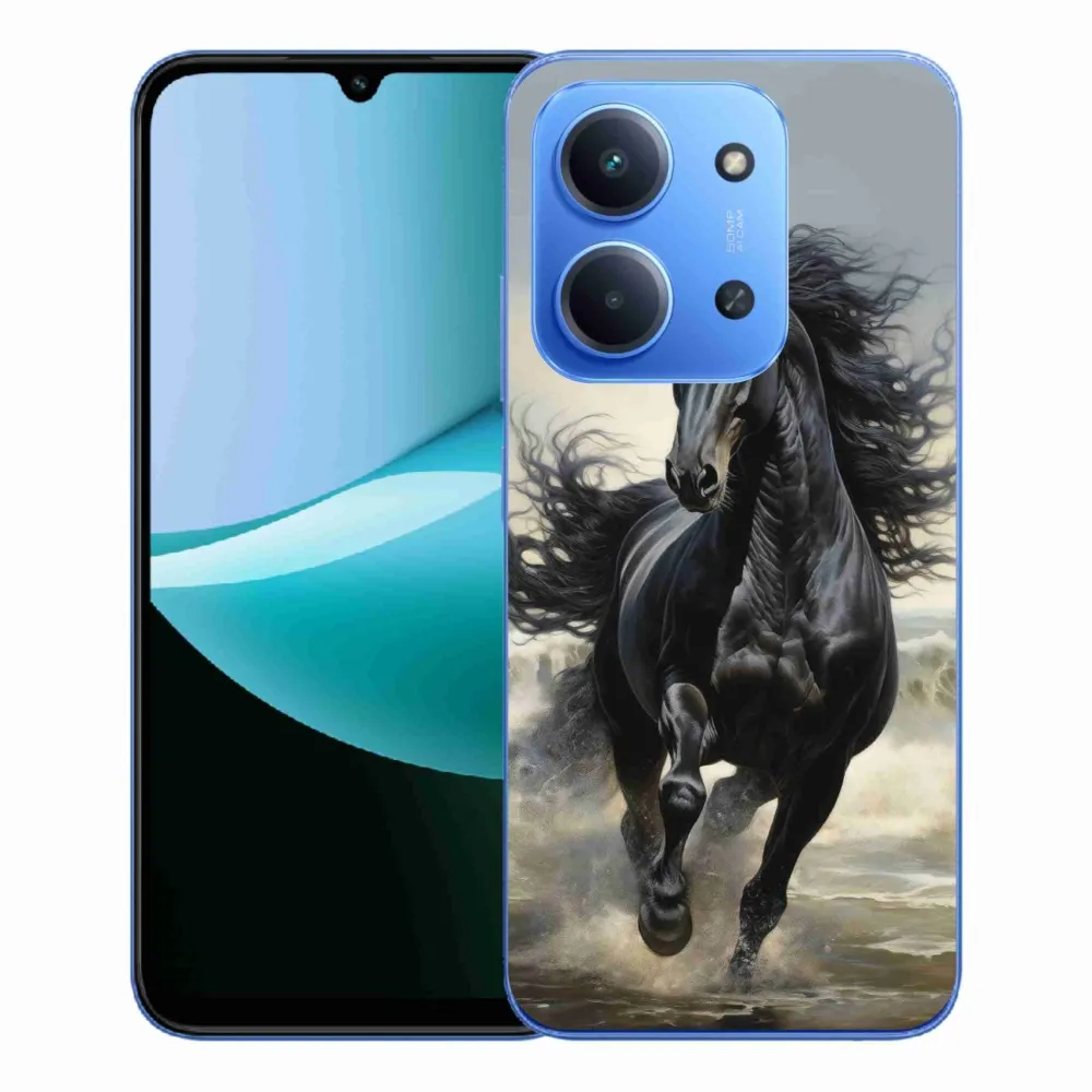 Pružný gélový obal mmCase s obrázkom na Xiaomi Redmi 15C 173mm - bežiaci čierny kôň