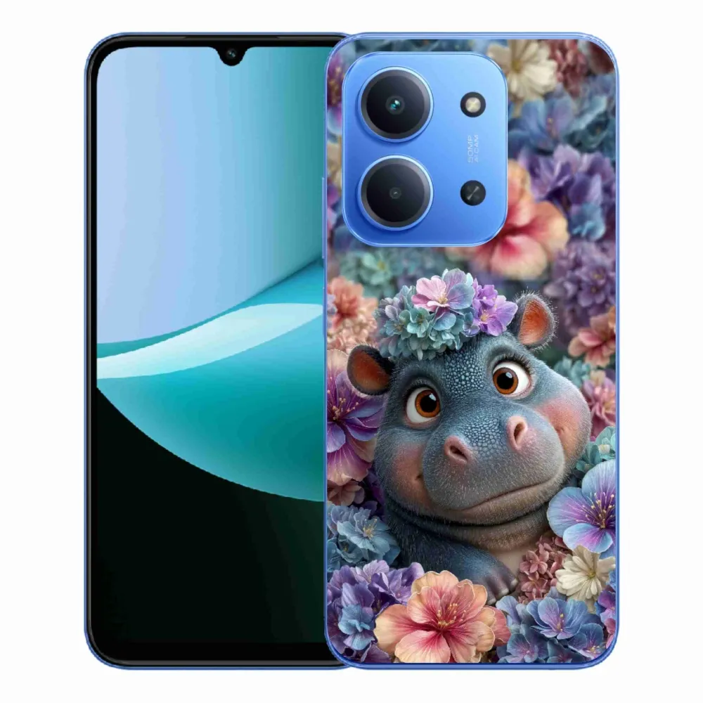 Pružný gélový obal mmCase s obrázkom na Xiaomi Redmi 15C 173mm - hrošík v kvetoch