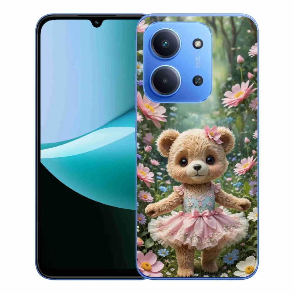 Zvieracie púzdro na Xiaomi Redmi 15C 173mm - roztomilý medvedík v kvetoch poskytuje všetky výhody gélových obalov, a to v zaujímavom dizajne.