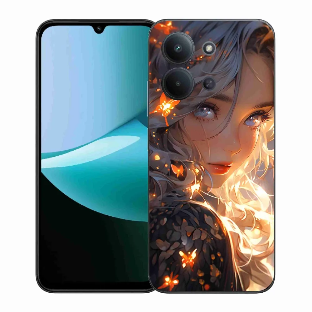 Púzdro s motívom dievča a motýle na Xiaomi Redmi 15C 4G (171mm)/Poco C85 4G (171mm) poskytuje všetky výhody gélových obalov, a to v zaujímavom dizajne.
