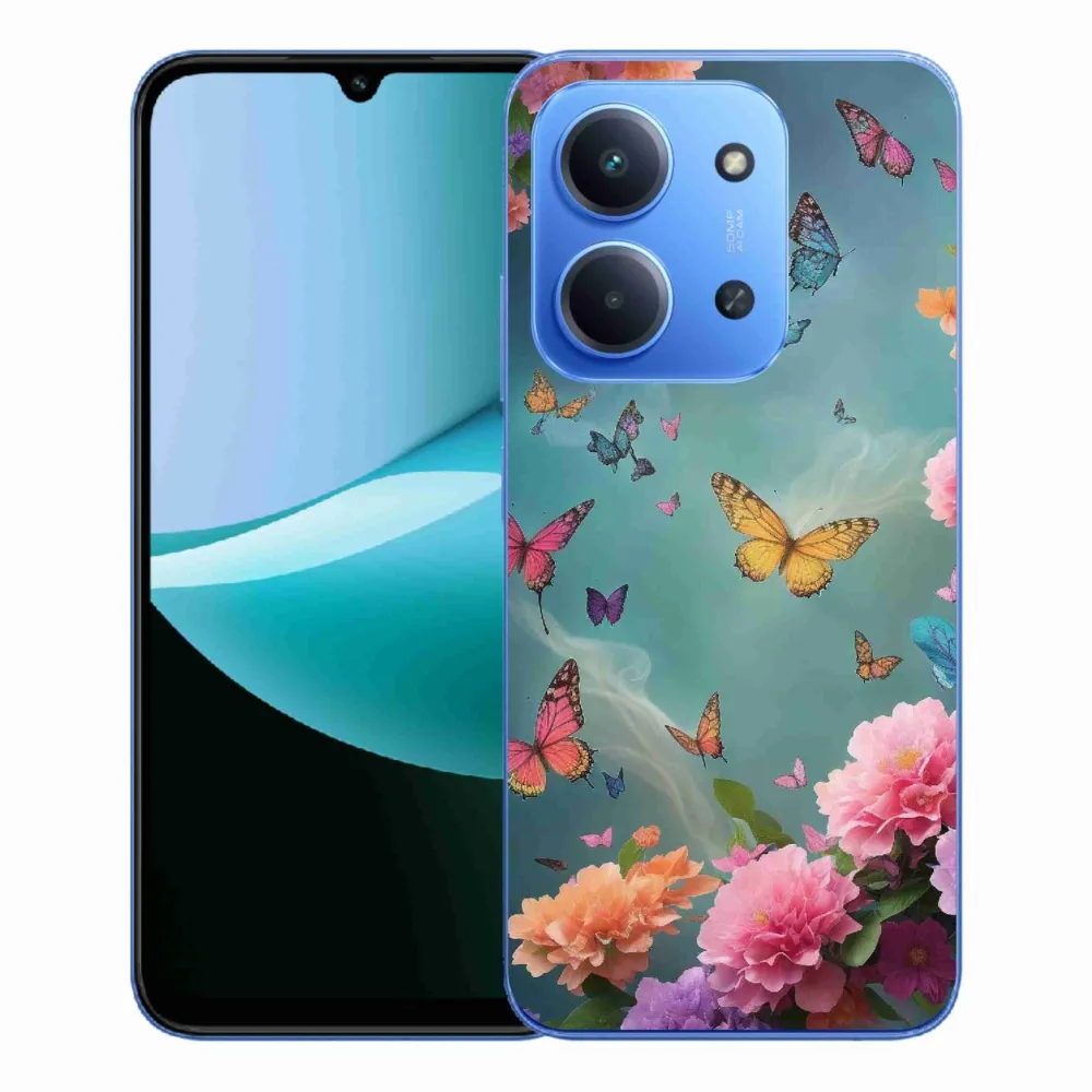 Pružný gélový obal mmCase s obrázkom na Xiaomi Redmi 15C 4G/5G (173mm) - farebné kvety a motýle