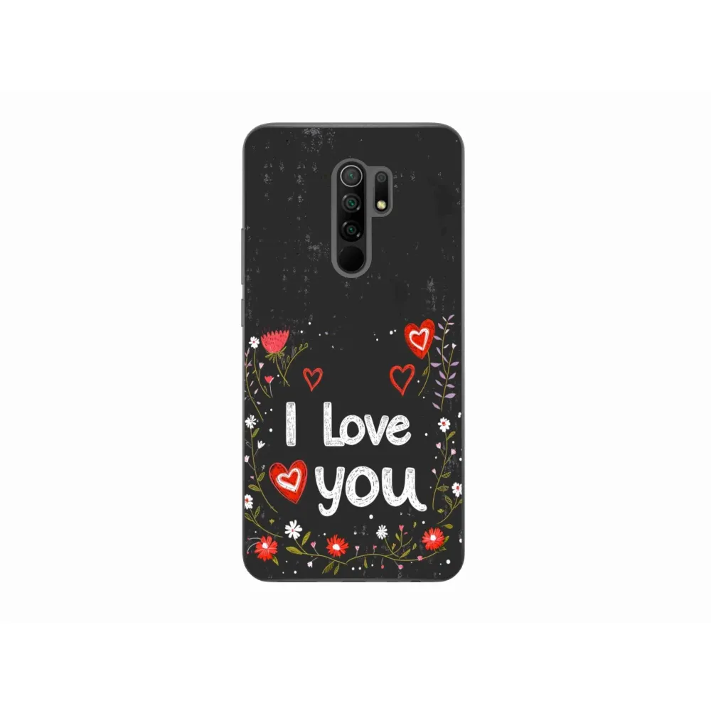Pružný gélový obal mmCase s obrázkom na Xiaomi Redmi 9 - I love you čierne pozadie