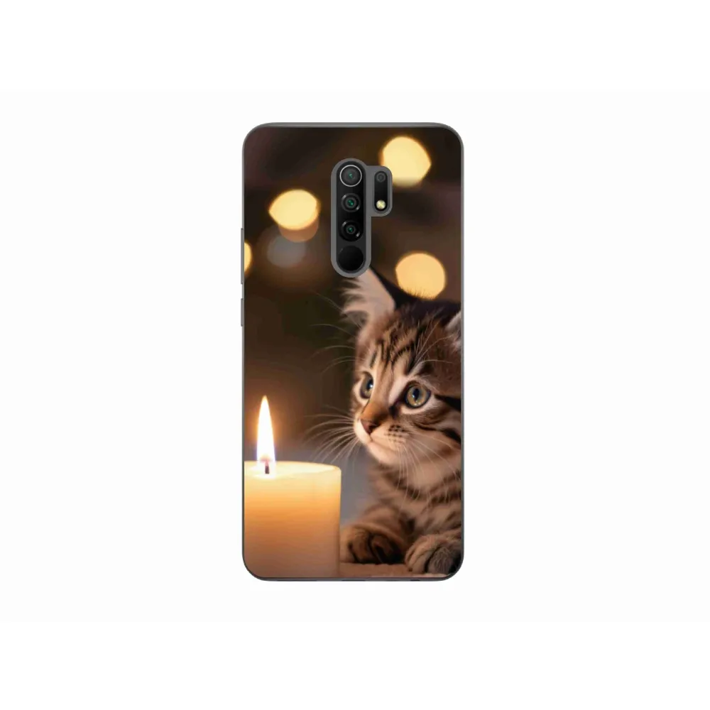 Pružný gélový obal mmCase s obrázkom na Xiaomi Redmi 9 - mačiatko a sviečka