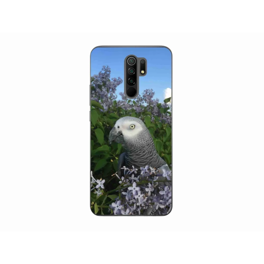 Vtáčie puzdro na Xiaomi Redmi 9 - papagáj žako poskytuje všetky výhody gélových krytov, a to v zaujímavom dizajne.