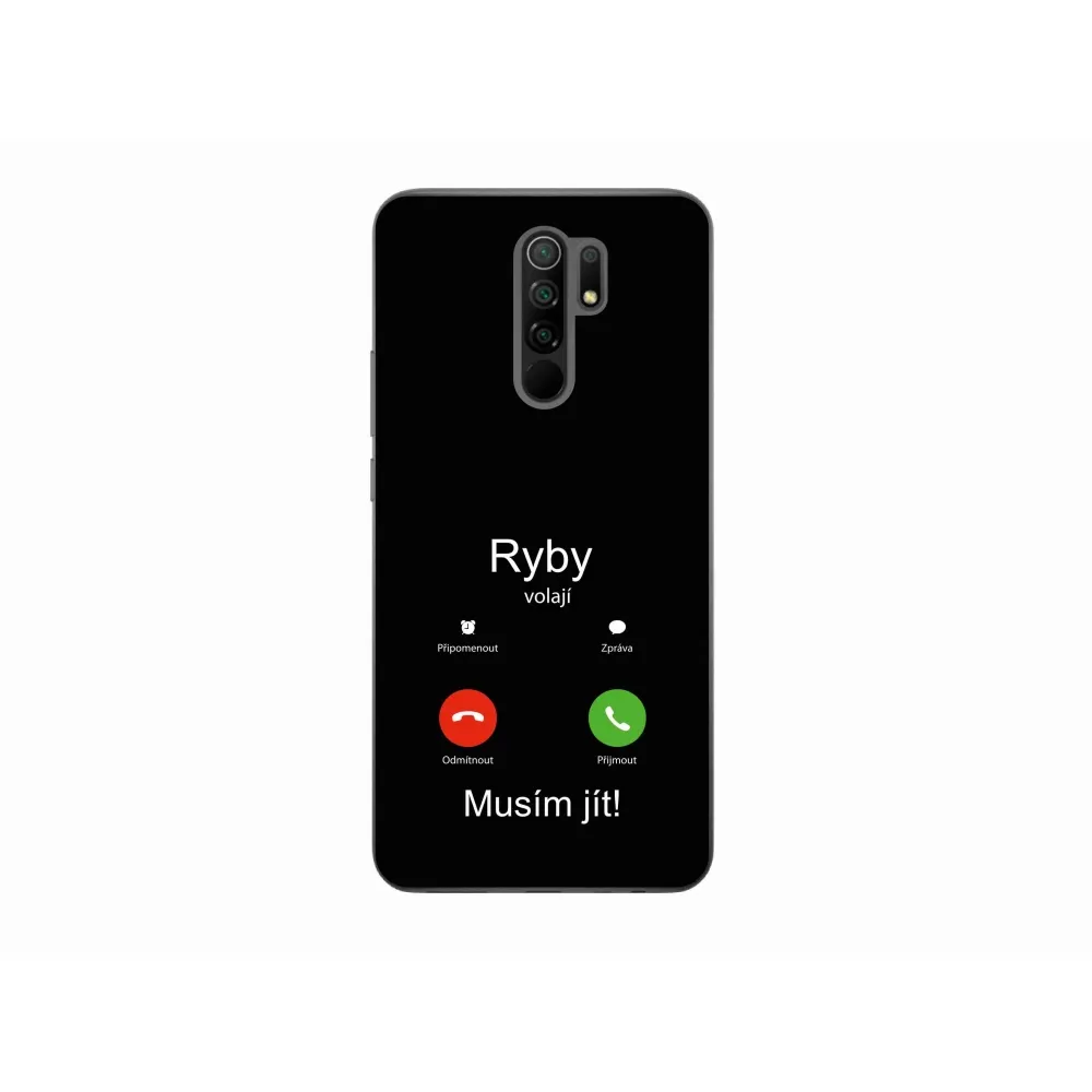 Púzdro pre rybárov na Xiaomi Redmi 9 - ryby volajú čierne pozadie poskytuje všetky výhody gélových krytov, a to v zaujímavom dizajne.