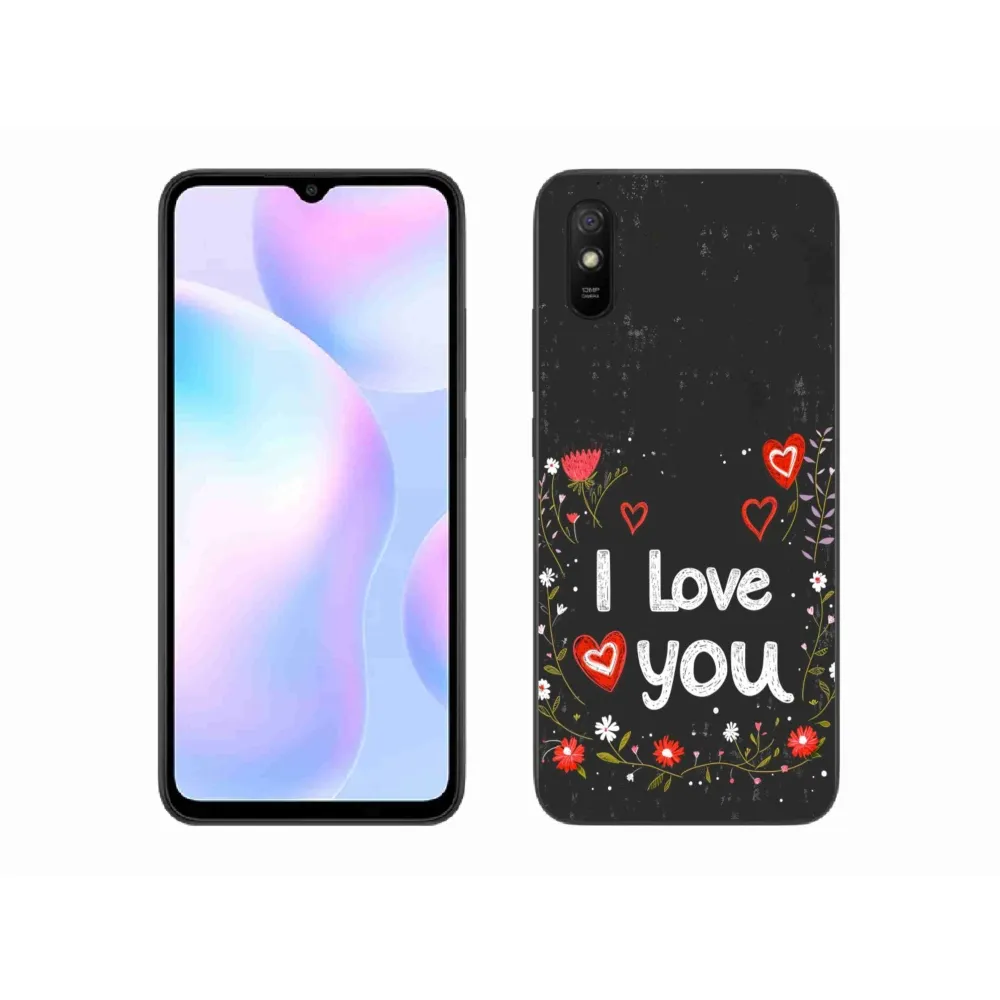 Pružný gélový obal mmCase s obrázkom na Xiaomi Redmi 9A - I love you čierne pozadie