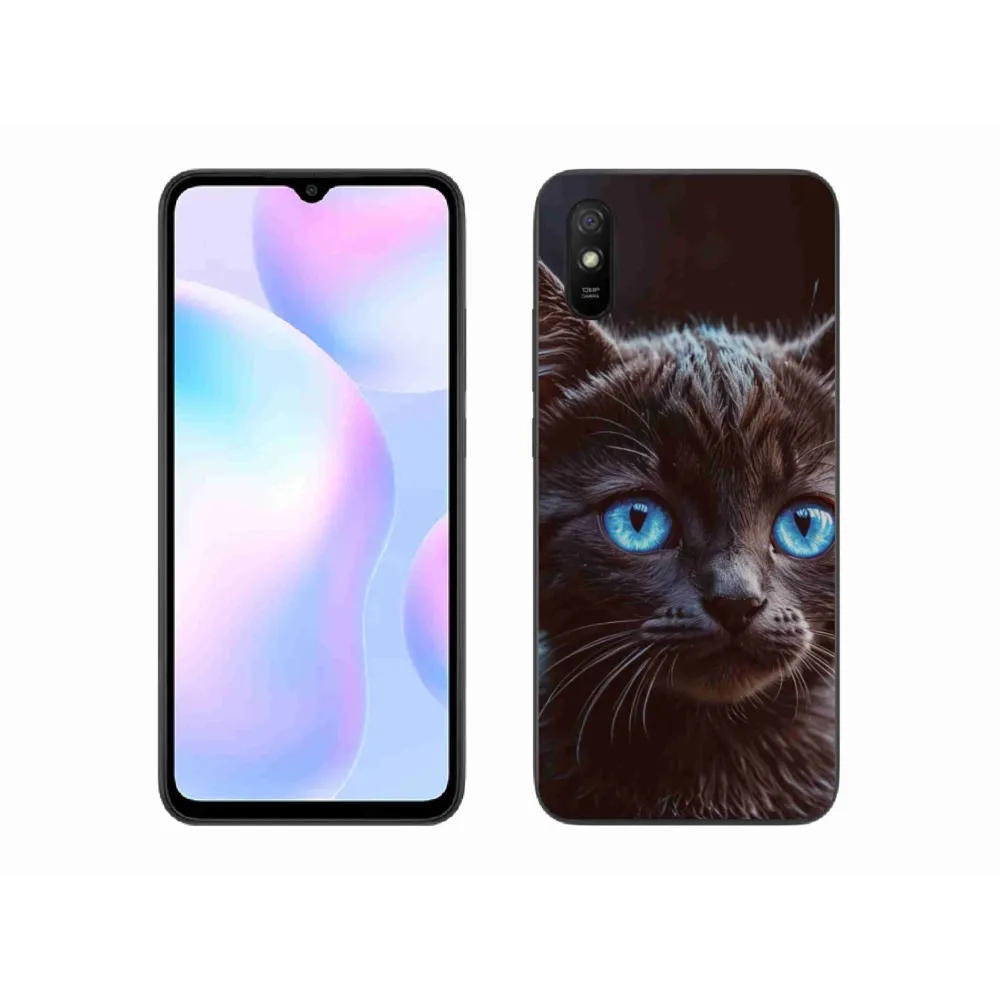 Pružný gélový obal mmCase s obrázkom na Xiaomi Redmi 9AT - čierne mačiatko 2