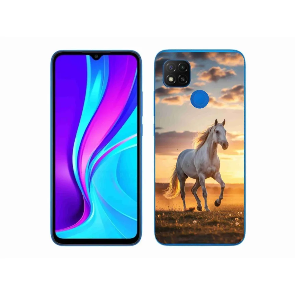 Pružný gélový obal mmCase s obrázkom na Xiaomi Redmi 9C - bežiaci biely kôň 2