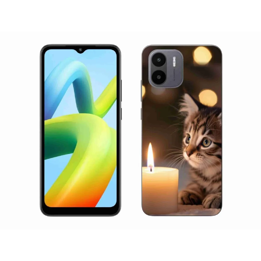 Pružný gélový obal mmCase s obrázkom na Xiaomi Redmi A1 4G - mačiatko a sviečka