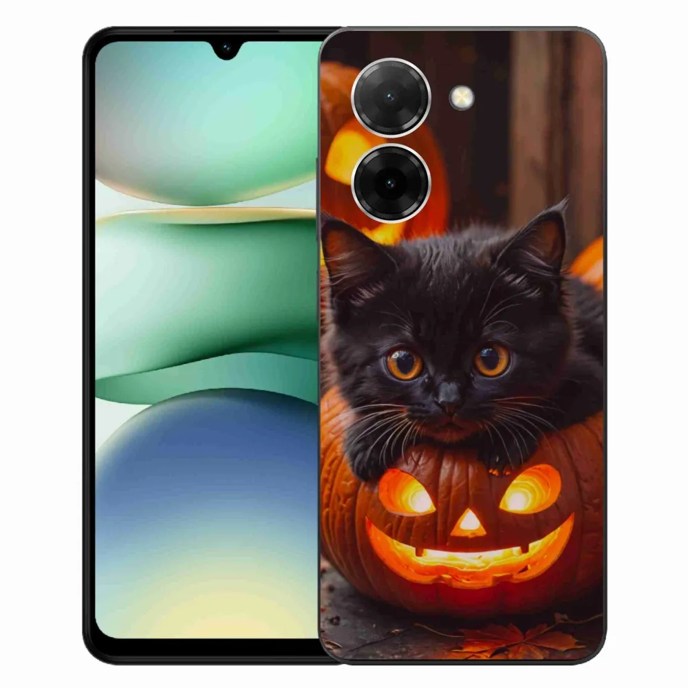 Mačacie púzdro na Xiaomi Redmi A5 (171.7x77.8x8.3mm) - mačiatko a tekvica poskytuje všetky výhody gélových obalov, a to v zaujímavom dizajne.