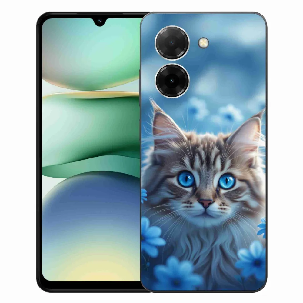 Pružný gélový obal mmCase s obrázkom na Xiaomi Redmi A5 171mm - mačiatko v modrých kvetoch