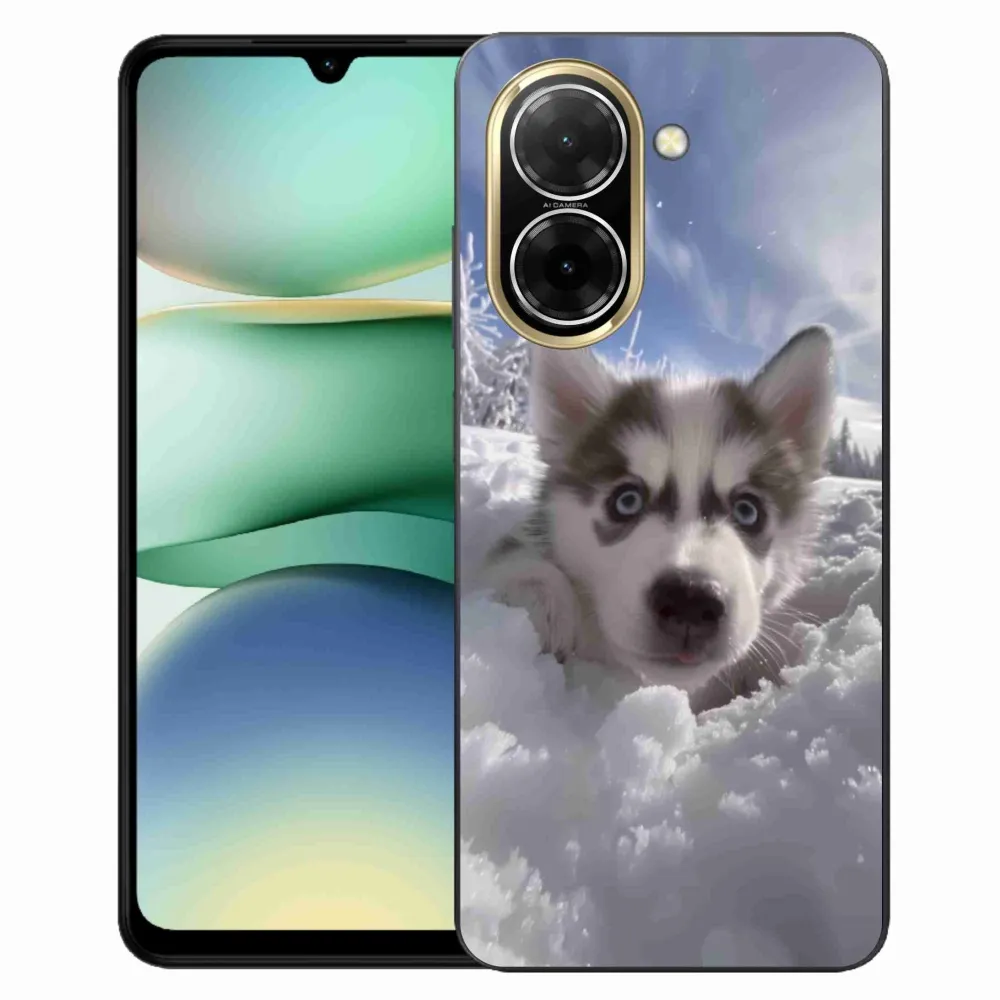 Psie púzdro na Xiaomi Redmi A5 (173.45x79.35x8.45mm) - husky v snehu poskytuje všetky výhody gélových obalov, a to v zaujímavom dizajne.