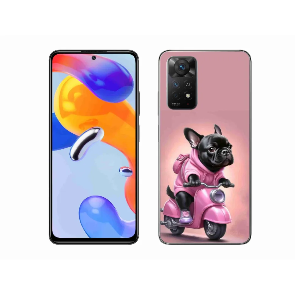 Psie púzdro na Xiaomi Redmi Note 11 Pro 4G/5G - francúzsky buldoček na skútri poskytuje všetky výhody gélových obalov, a to v zaujímavom dizajne.